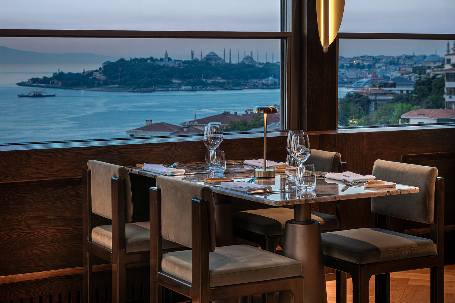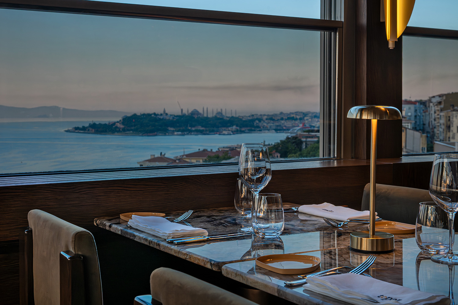 2007 yılından beri fine dining konseptiyle hizmet veren Topaz, Gümüşsuyu’nda enfes Boğaz manzarası eşliğinde rahat ve modern bir tasarıma sahip yemek salonu ve lounge bölümünün yanı sıra boğaz manzarasına karşı konumlanan yeni kokteyl barı ve yeşilliklerin içindeki terasıyla misafirlerini ağırlıyor.